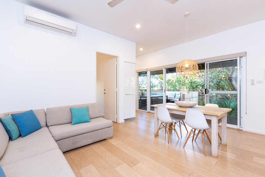 The villa is light, spacious and modern with original artwork, air-conditioning. There’s a comfortable corner lounge with TV and an in-room safe. Enjoy a full kitchen with indoor dining and Nespresso Coffee Machine, tea & coffee provided, full size fridge/freezer, stove, oven, microwave, dishwasher and utensils. The large bathroom boasts dual showers. Outside enjoy a private outdoor entertaining area with built in seating and a BBQ together with an outdoor rain shower.